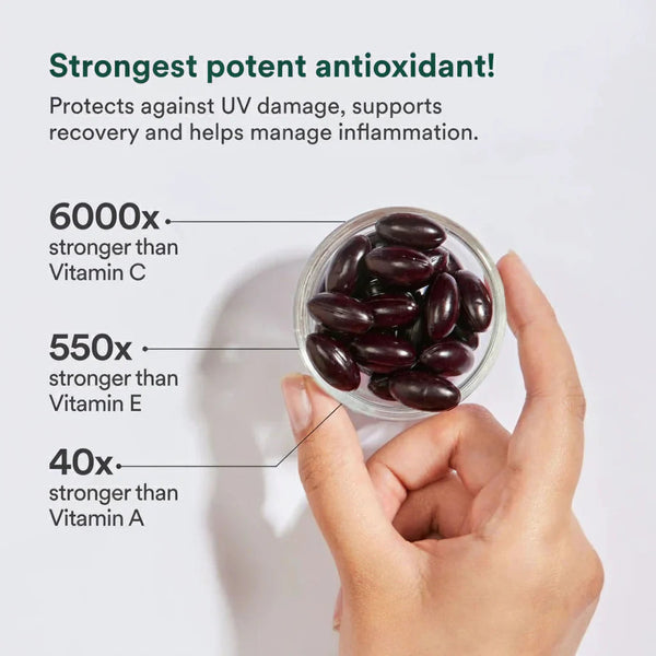Astaxanthin works deeper than creams, reducing dark spots and aging signs for radiant, youthful skin. Experience the confidence of glowing skin every day.