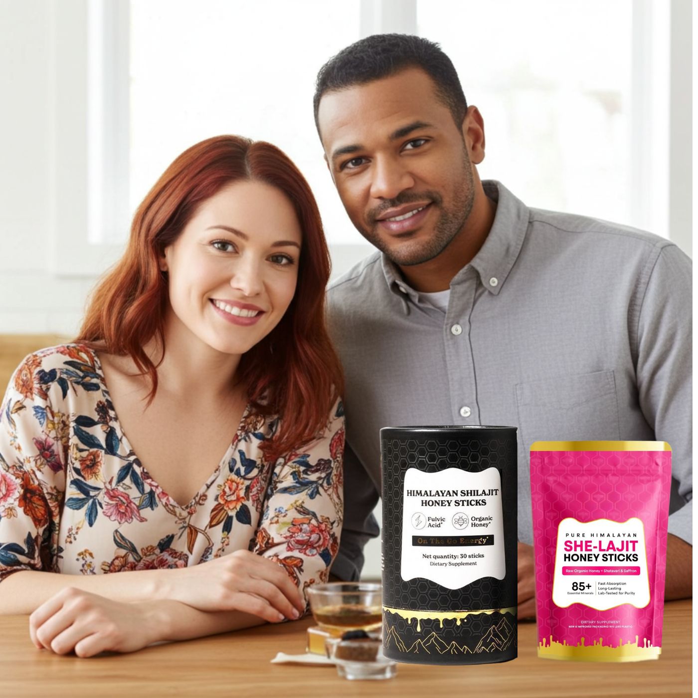 This bundle is crafted to give you guys the full spectrum of Shilajit’s benefits from rapid energy through honey sticks to deep, long-lasting vitality. Together, She-Lajit for women & Honey Sticks for men will fuel your body and mind the natural way.