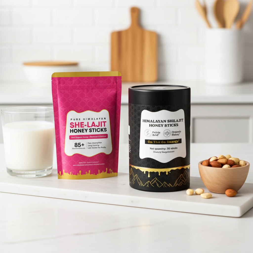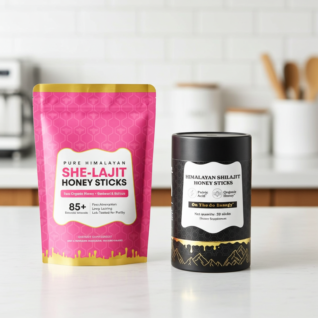 Our bundles combine two powerful honey packs of Shilajit so you never have to choose between convenience and potency. The honey sticks make daily use effortless, while She-Lajit for women delivers the authentic strength straight from the Himalayas to the females.